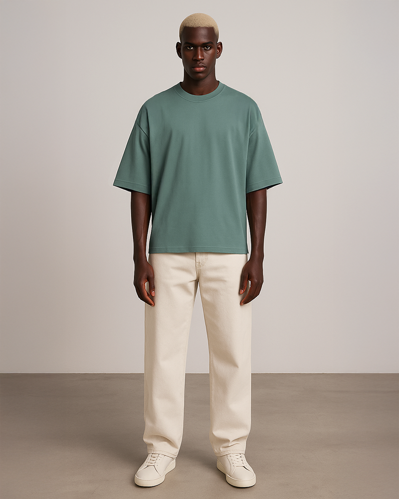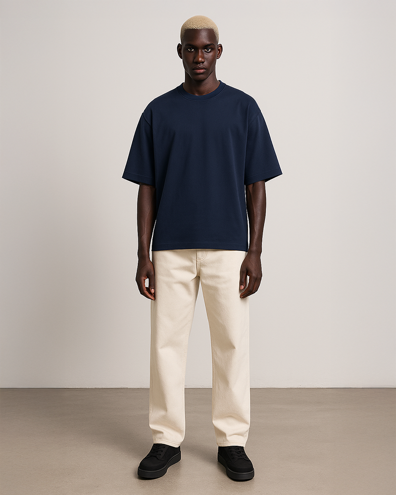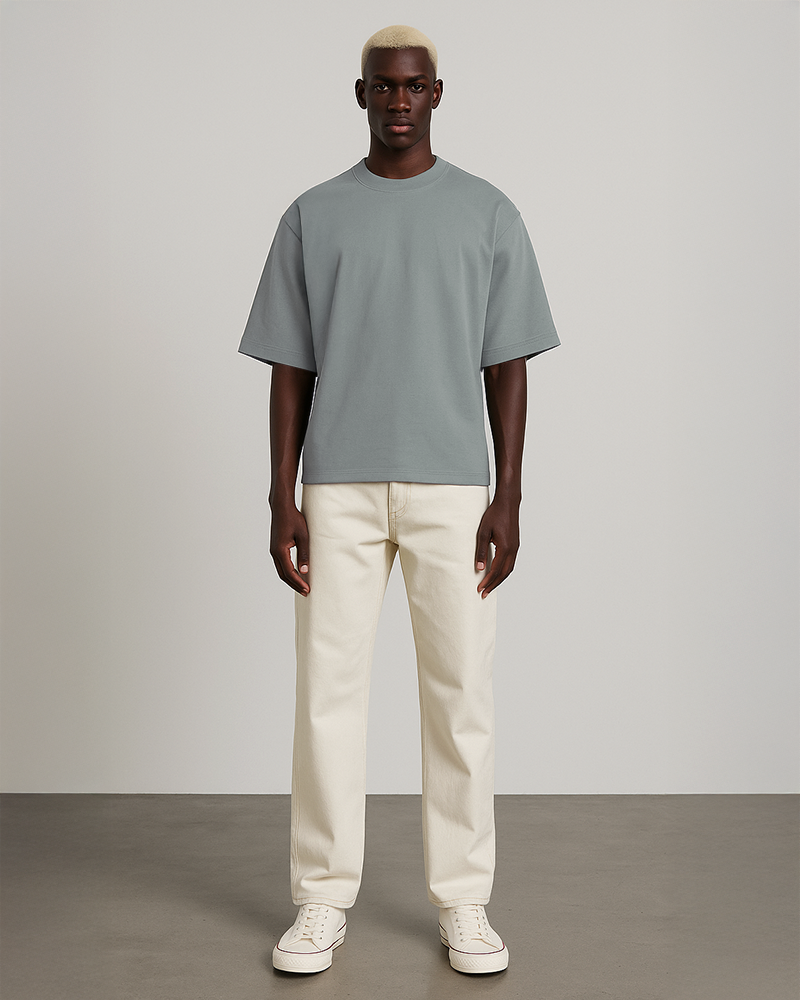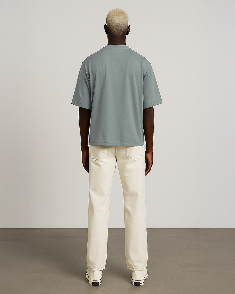 L'atelier Français source son coton en Grèce. Celui-ci est ensuite tricoté à Barcelos. Une fois les rouleaux de tissus prêts, ils sont envoyés dans notre atelier à Aubervilliers pour procéder à la coupe et au montage des pièces. L'impression de l'étiquette au col et les dernières finitions sont réalisées ici même.
